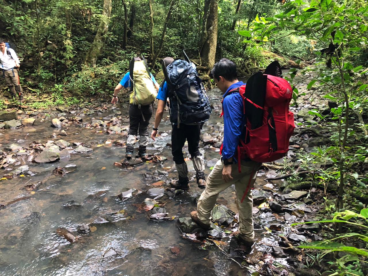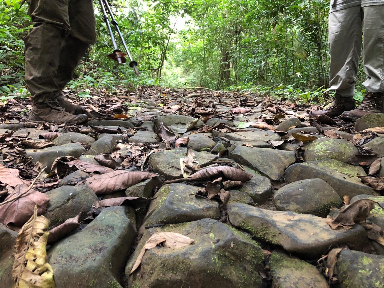The hike entails 12Km walking on irregular jungle terrain (some loose cobblestone, as well as tree roots and branches) and 3.5Km paddling on a packraft. Sturdy footwear and good ankles are necessary, as well as sun protection.